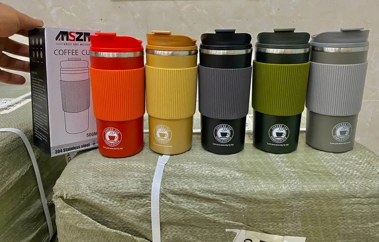 تراول ماگ طرح مای کافی حجم 500 میلی لیتر با کمربند سیلیکونی